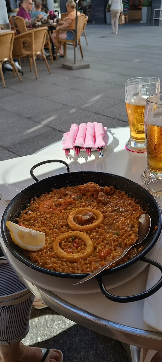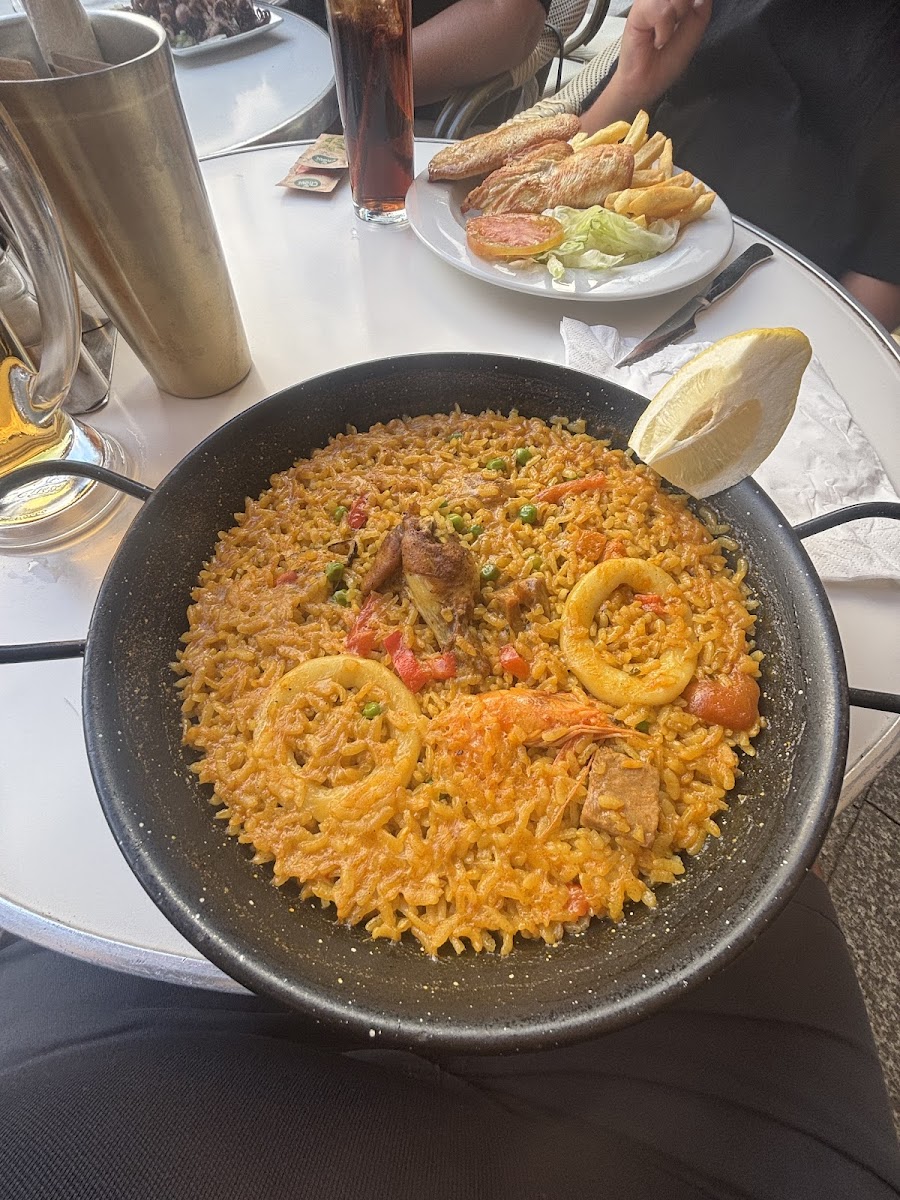 The menu is a blend of Spanish coastal flavors and approachable comfort food, with standout dishes like paella mixte and crispy calamari appearing alongside generous portions of tapas such as patatas bravas and garlic mushrooms. The seafood-focused friture de petits poissons and sardinas hint at the town’s maritime character, though some diners note the paella can lean a bit light on seafood.