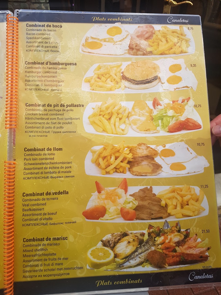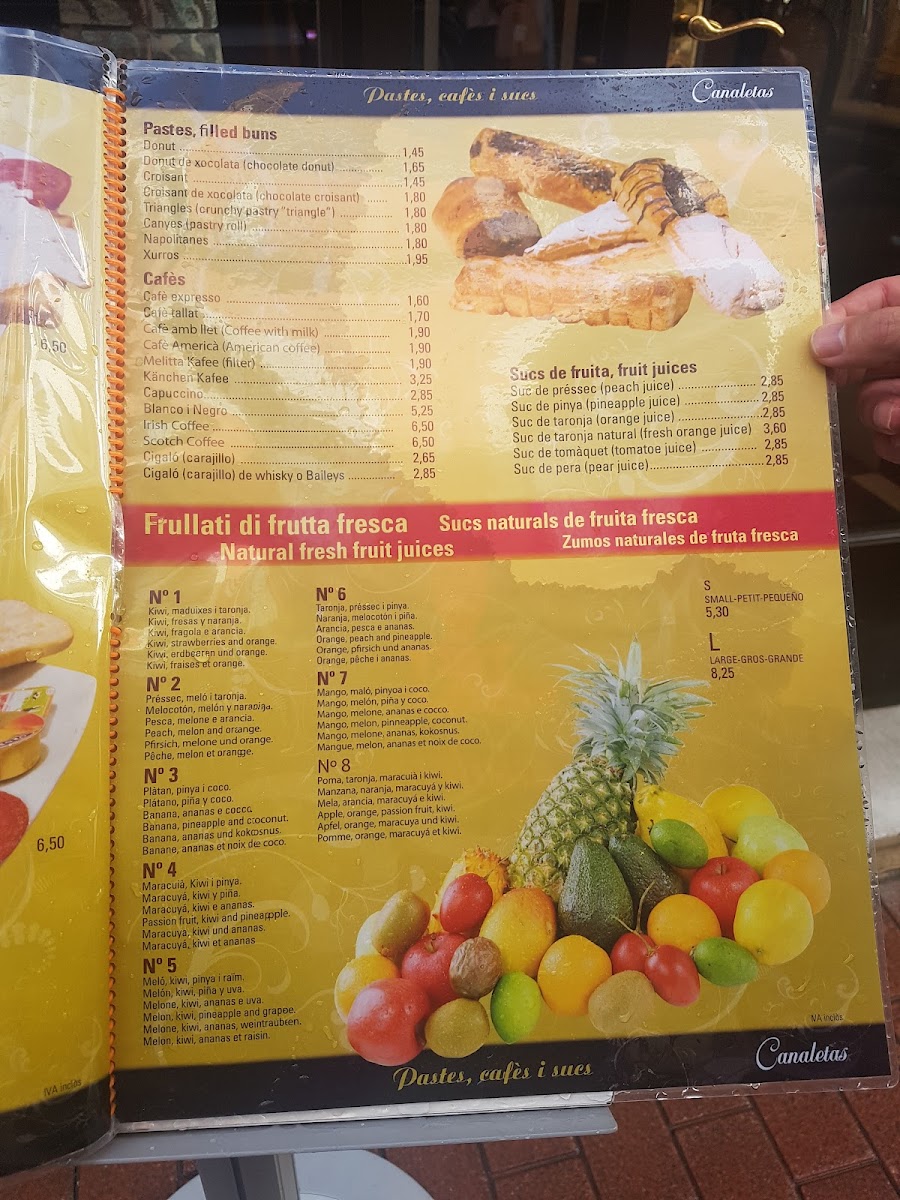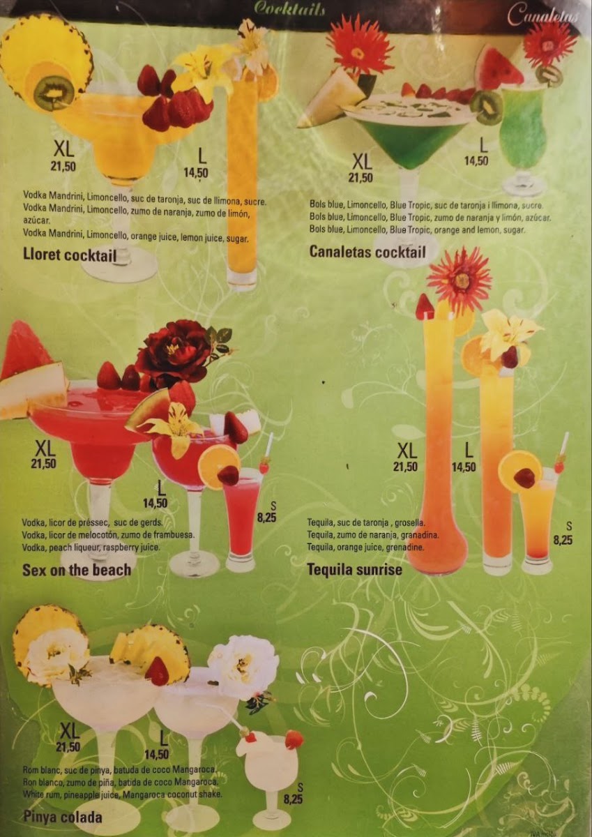The menu at Cafeteria Canaletas offers a diverse selection suited for various dining occasions including coffee breaks, light meals, and casual dining. Visitors can choose from an extensive range of beverages such as specialty coffees, beers, and a variety of cocktails and sangrias, including some notable options featuring cava and champagne.