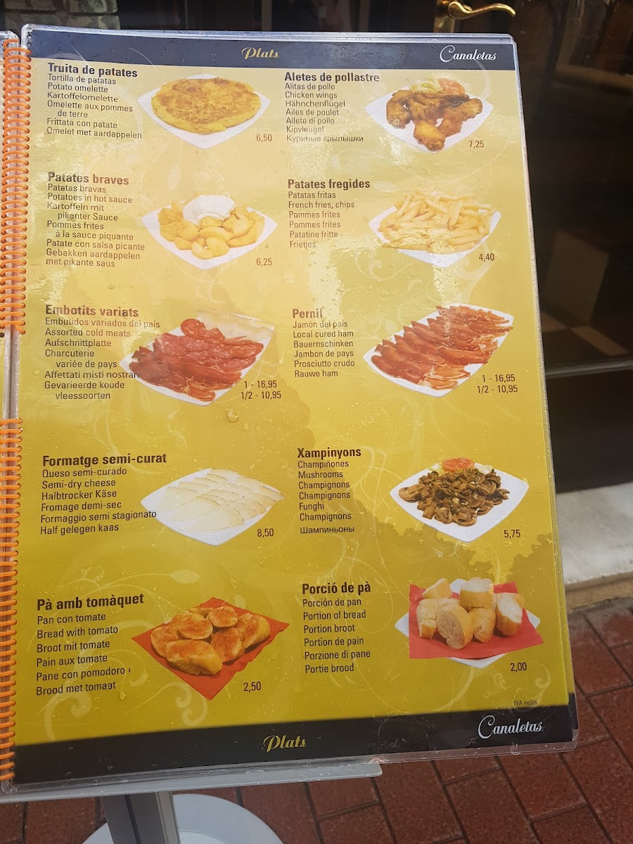 - Main Dishes: Traditional Spanish cuisine like paella and grilled sardines, as well as pizza.